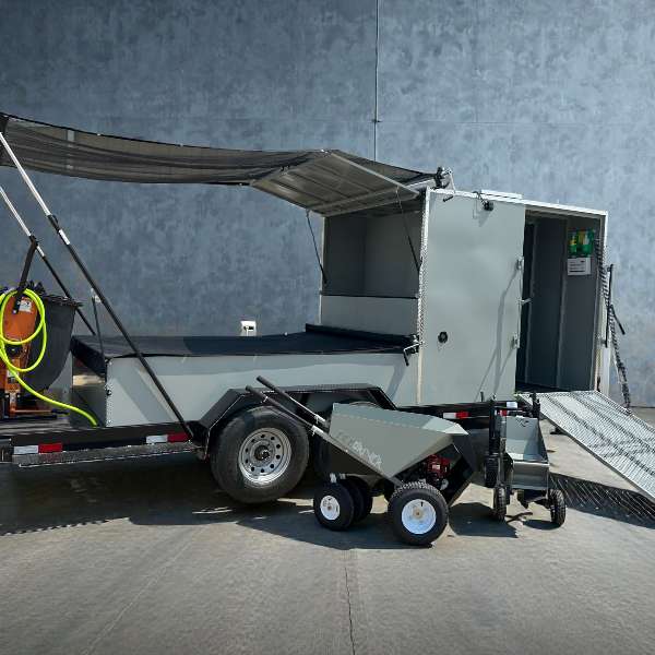 The 8k axles and 14ply tires give you the peace of mind to haul heavy. If you want to haul 750ft of material you certainly can with this beast. It’s an impressive site to see these curbing trailers onsite.